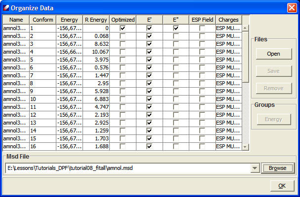 All QM data are organized in a special format denoted as QMD file in DFF. This provides a common interface to use other QM software. The following screenshot shows the spreadsheet of quantum data.